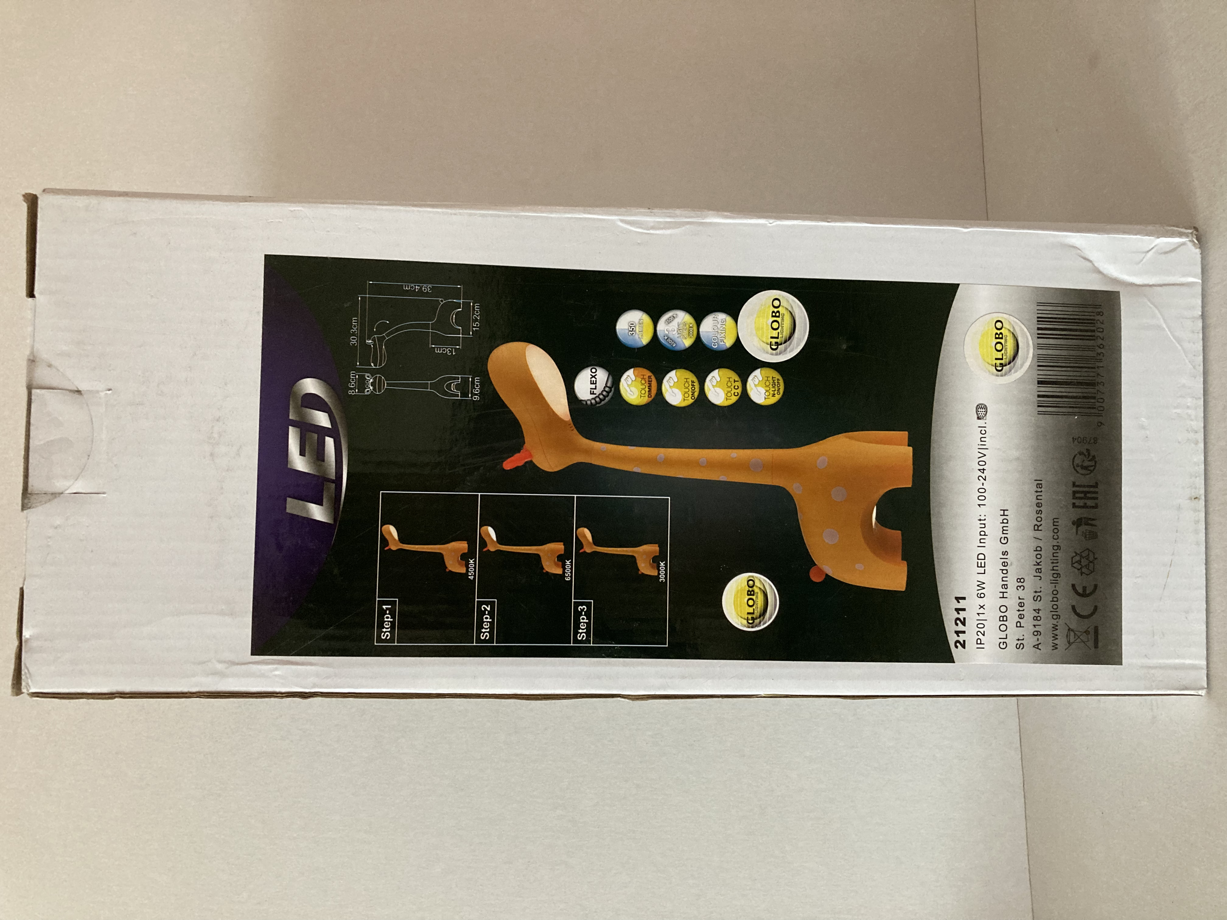 LED stolní lampa žirafa GLOBO lighting 21211 stmívatelná 6WSkladem 1 ks1 000,00 Kč/ ks826,45 Kč bez DPH