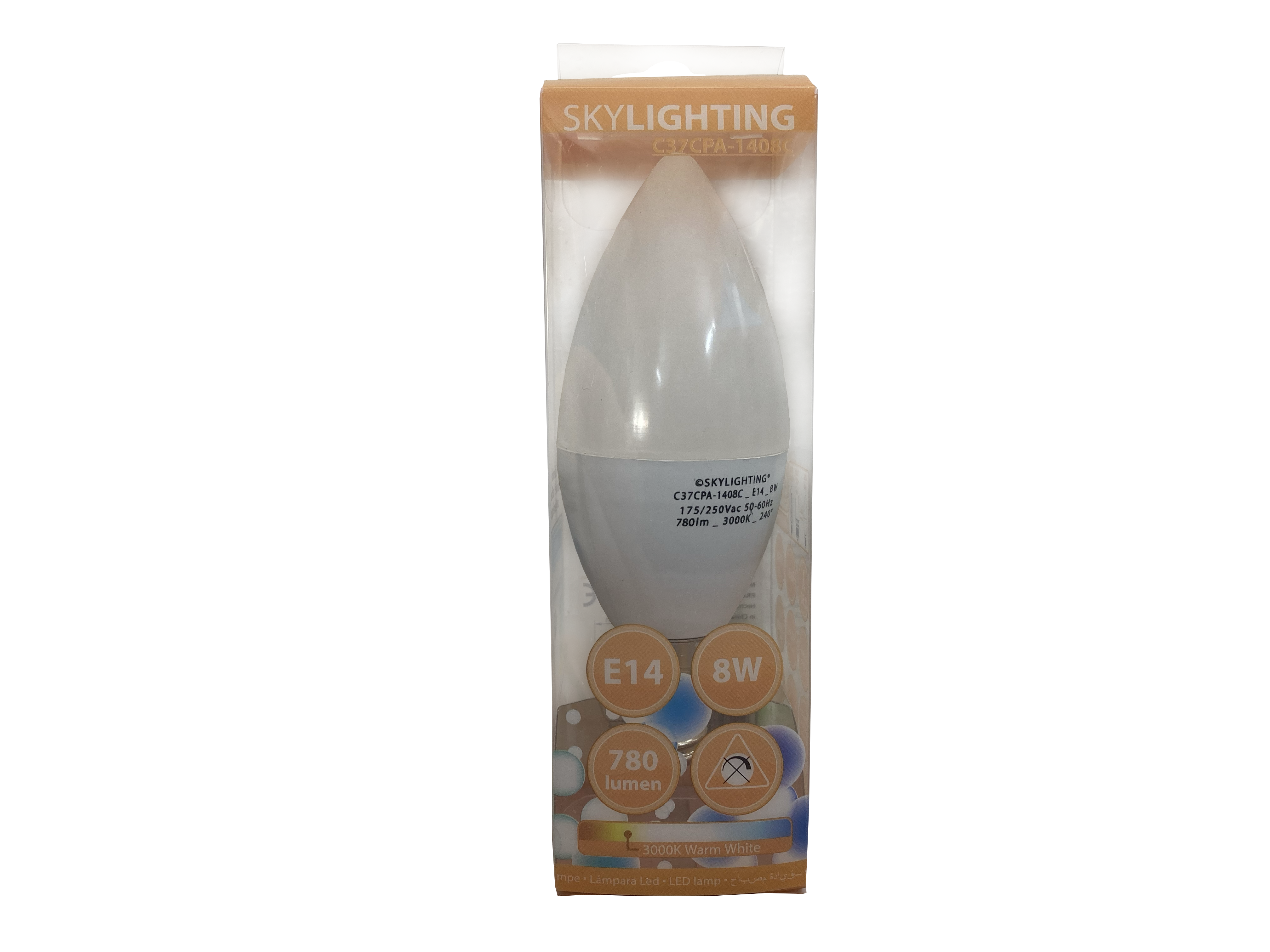 LED žárovka E14 SKYLIGHTING 8W C37CPA-1408C 3000K teplá bíláSkladem 95 ks45,00 Kč/ ks37,19 Kč bez DPH