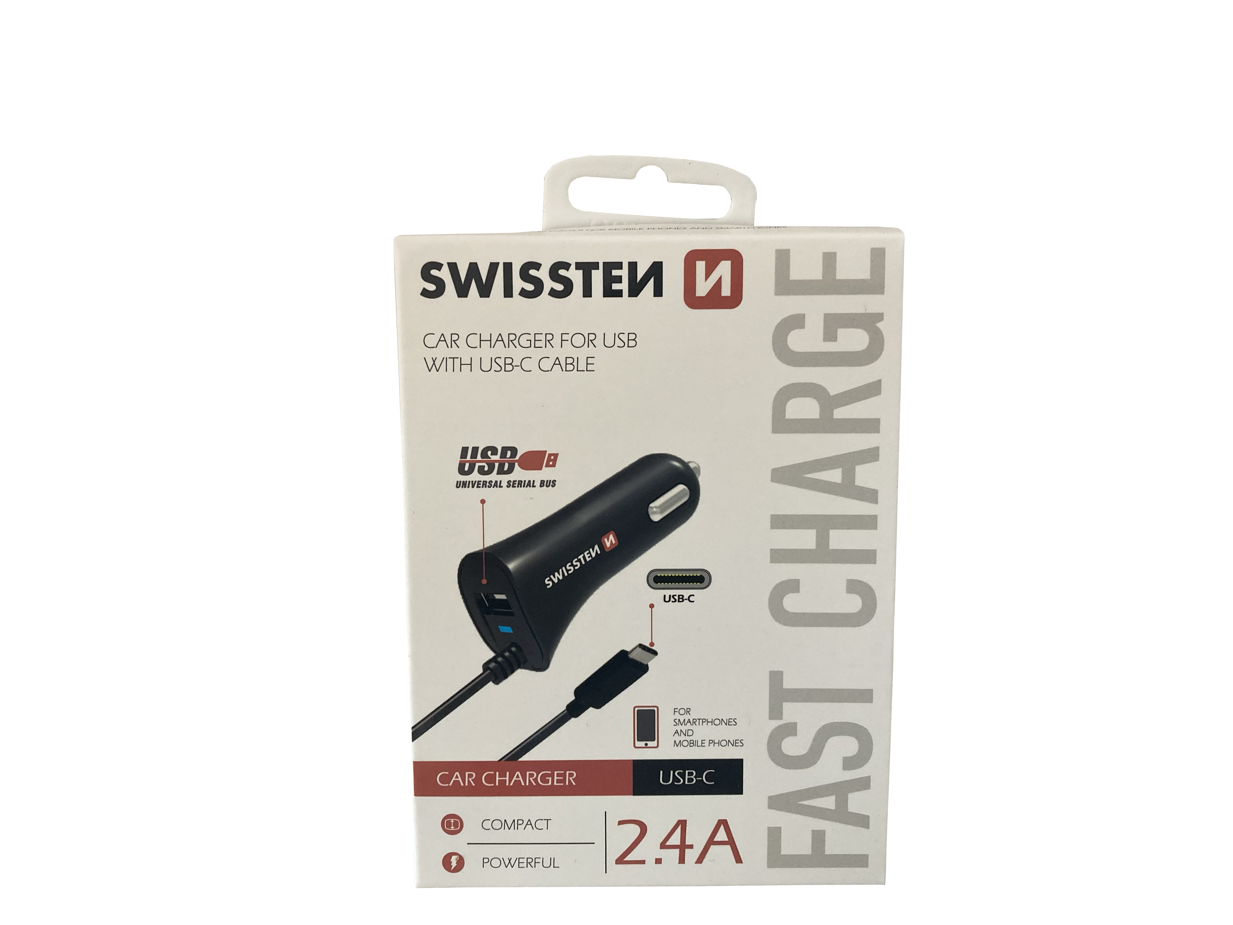 autonabíječka SWISSTEN CAR CHARGER USB-C 2,4A 1xUSB a kabel USB-C