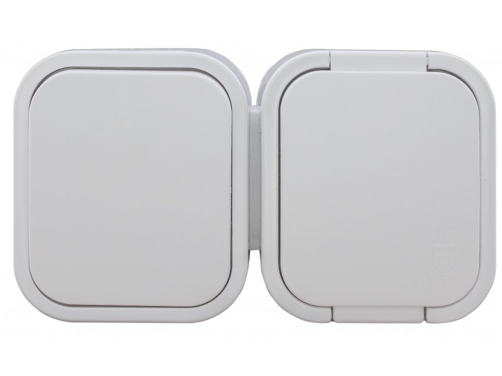 GWN-B2 zásuvka jednonásobná 2p+Z s víčkem + spínač IP54 bílá