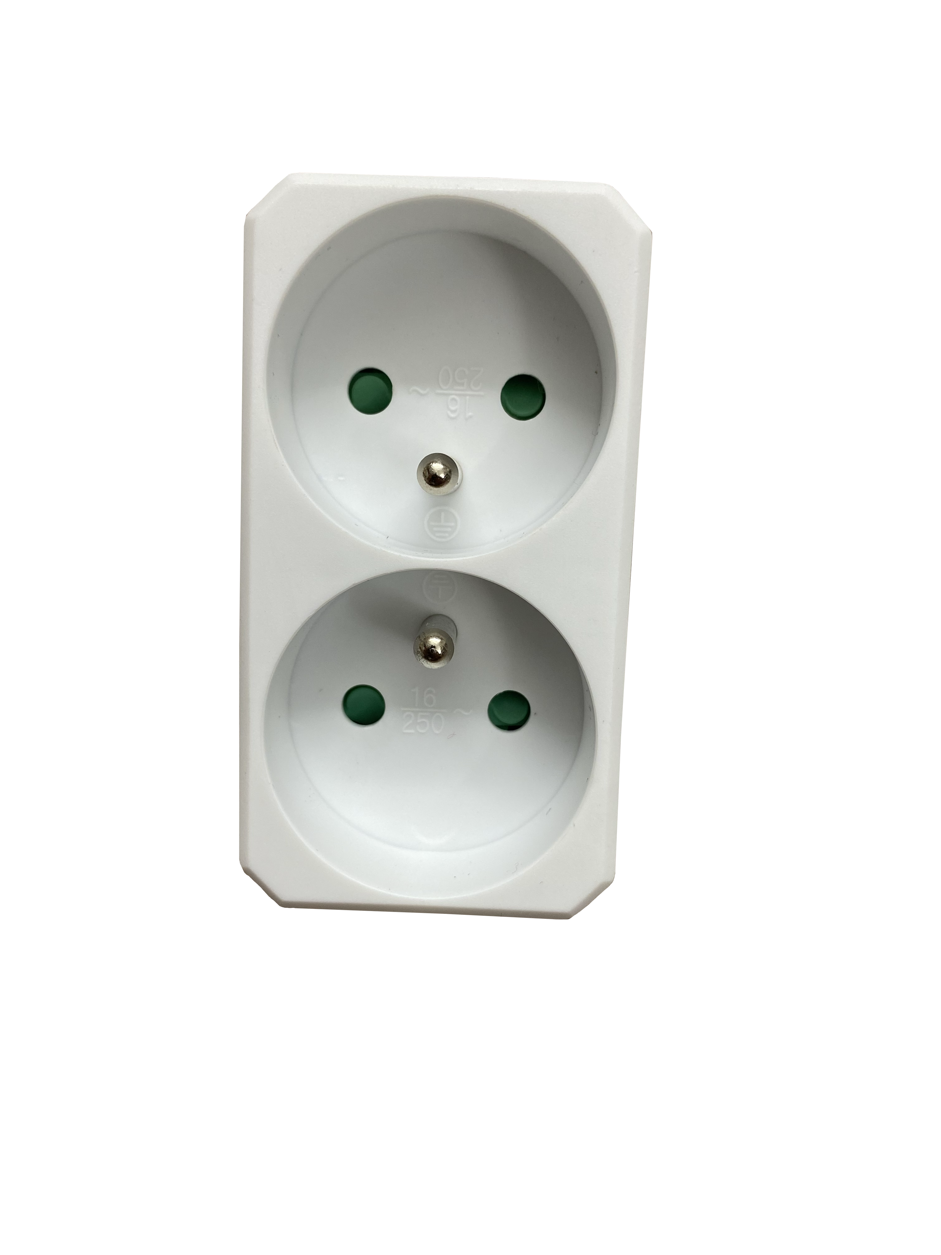 rozbočka 2x kulatá zásuvka 230V pro vnitřni použítí. Max. 3680W