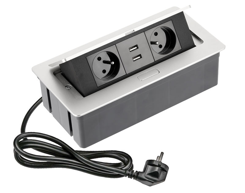 Výklopný zásuvkový blok 2 USB porty. Díky dvěma USB portům mužete kdykoliv a pohodlně dobíjet svá mobilní zařízení. Tento zásuvkový blok je určen pro instalaci na jakýkoliv kancelářský nábytek. Najde si tak své využití např. na pracovních stolech. Instalovat jej můžete horizontálně i vertikálně. Včetně přívodního kabelu s koncovkou